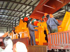振強(qiáng)公司與哈沙克斯坦多家大中型企業(yè)簽訂了長(zhǎng)期供貨協(xié)議,圖為振強(qiáng)公司正給貨車裝貨,把破碎機(jī)發(fā)往哈沙克斯坦。
