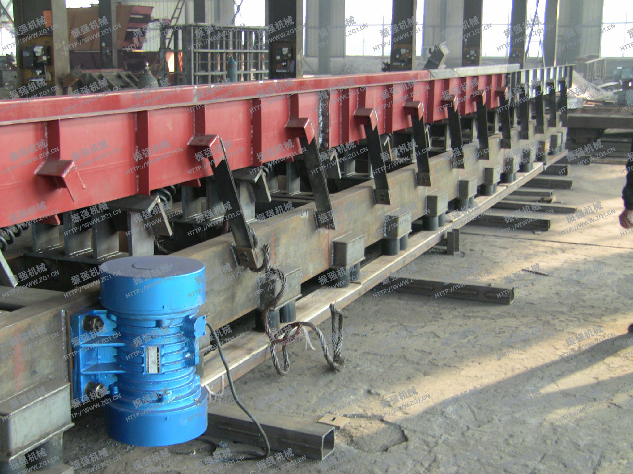 - SZF型慣性振動輸送機采用兩臺振動電機作為激振動源,運用自同步原理,兩臺振動電機反向轉動,使輸送機底部平衡架產生往復振動,經過主振簧與導向板簧的作用,帶動上部輸送槽振動,從而達到輸送物料的目的。該機是一種通用輸送機械,除用于水泥行業(yè)外,還可用于冶金、礦山、化工、電力等行業(yè),是一種理想的新型輸送設備。