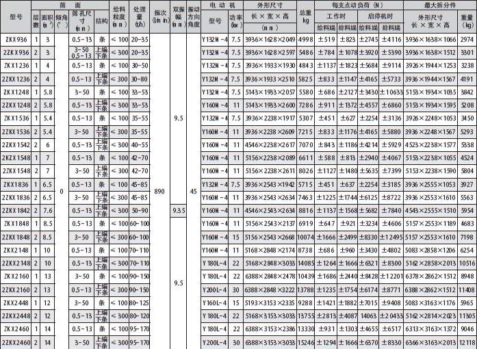 篩機(jī)型號(hào) | 振動(dòng)器 | 尺寸代號(hào) | ||||||||||||||||||||||
