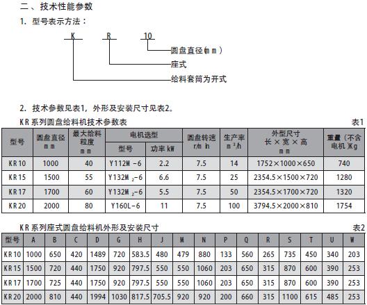 2. KR系列座式圓盤(pán)給料機(jī)正常按Y系列電動(dòng)機(jī)供貨;